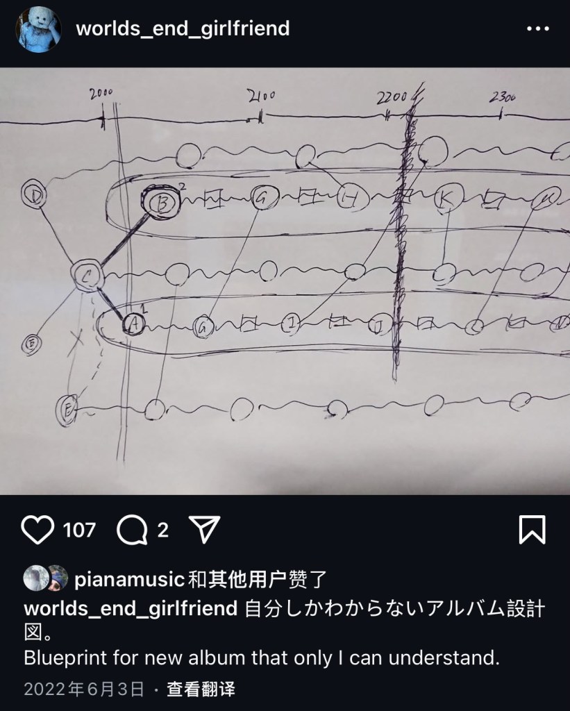 迷宮はあまりに巨大で複雑で、聴く者は知らぬ間に迷い込む。weg はかつて一枚のルートマップを示したが、「自分しかわからない」と言った。「最初と最後の曲を逆再生してみてはどうですか?」そこで私は聴いた──その二つの歌は、私の中にあなたがいて、あなたの中に私がいること。永遠に循環する映画。メビウスの迷宮。