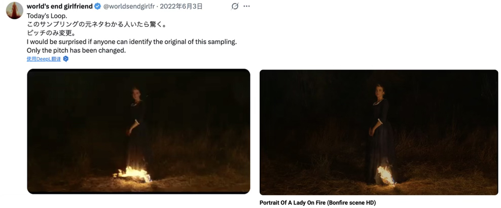 この吟唱は、映画『燃ゆる女の肖像』の焚き火のシーンからのサンプリングかもしれない。死のように静かな冥河を燃え立たせるものは何か。それは心の火だけだ。